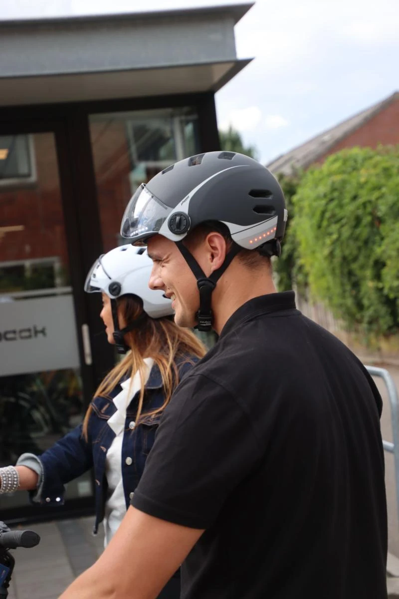 Le casque avec visière et lumineux Phenix Helmet rĂ©unit tout ce qu’un casque de vĂ©lo urbain peut proposer de mieux. C’est un petit bijou technologique pour le vĂ©lo en ville. Avis aux cyclistes connectĂ©s !