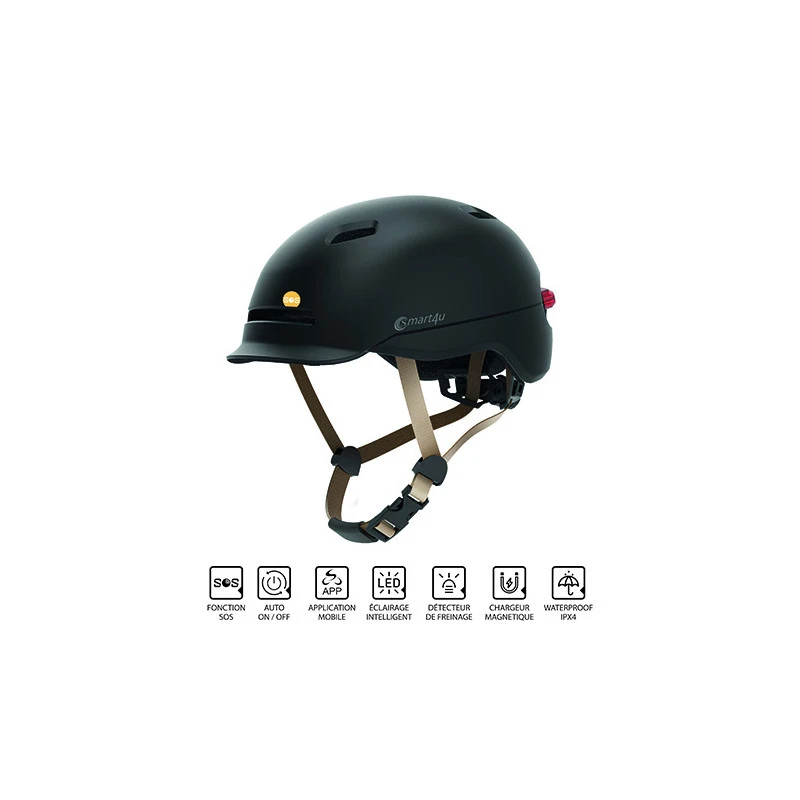 Ce casque urbain avec la fonction SOS intĂ©grĂ© se relie au smartphone du cycliste via l’application disponible sous iOS et Android. Il permet de dĂ©tecter, une chute, un choc et envoie un signal au numĂ©ro d’urgence prĂ©alablement enregistrĂ© après 90 s ainsi que la localisation du cycliste.