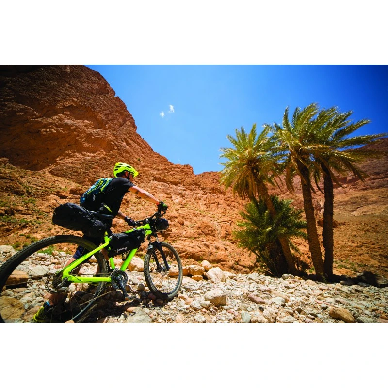 Sacoche pour fixer Ă la selle du vĂ©lo. LĂ©gère et dotĂ©e d’un volume ajustable jusqu’Ă 18 litres grâce Ă sa fermeture dĂ©roulante et ses sangles de compression.