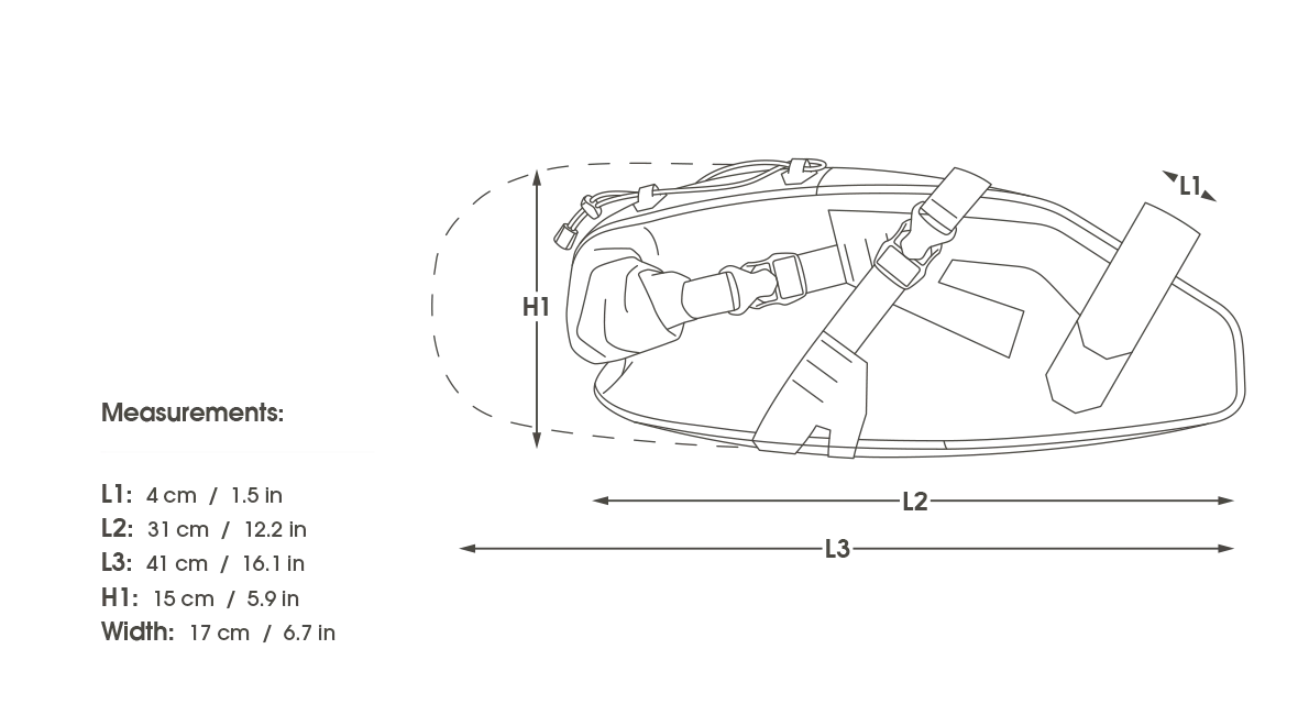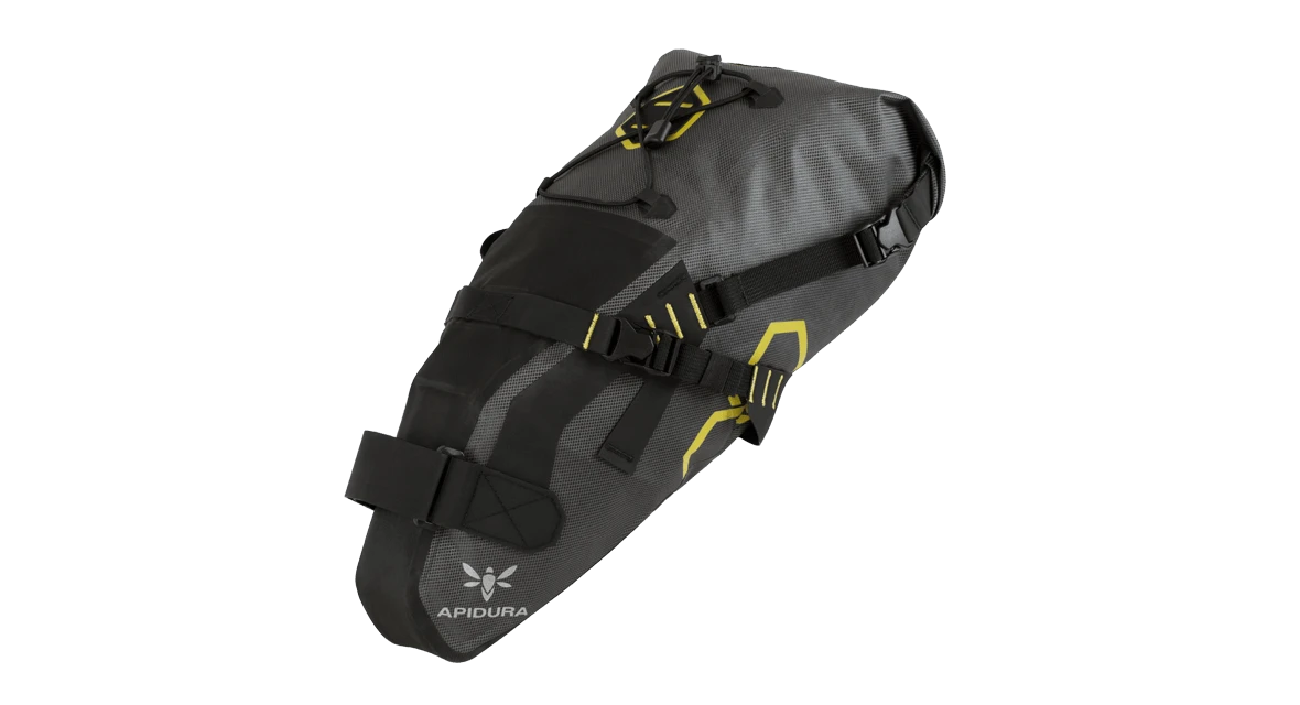 Sacoche de selle 100% Ă©tanche d’une contenance de 9 litres.