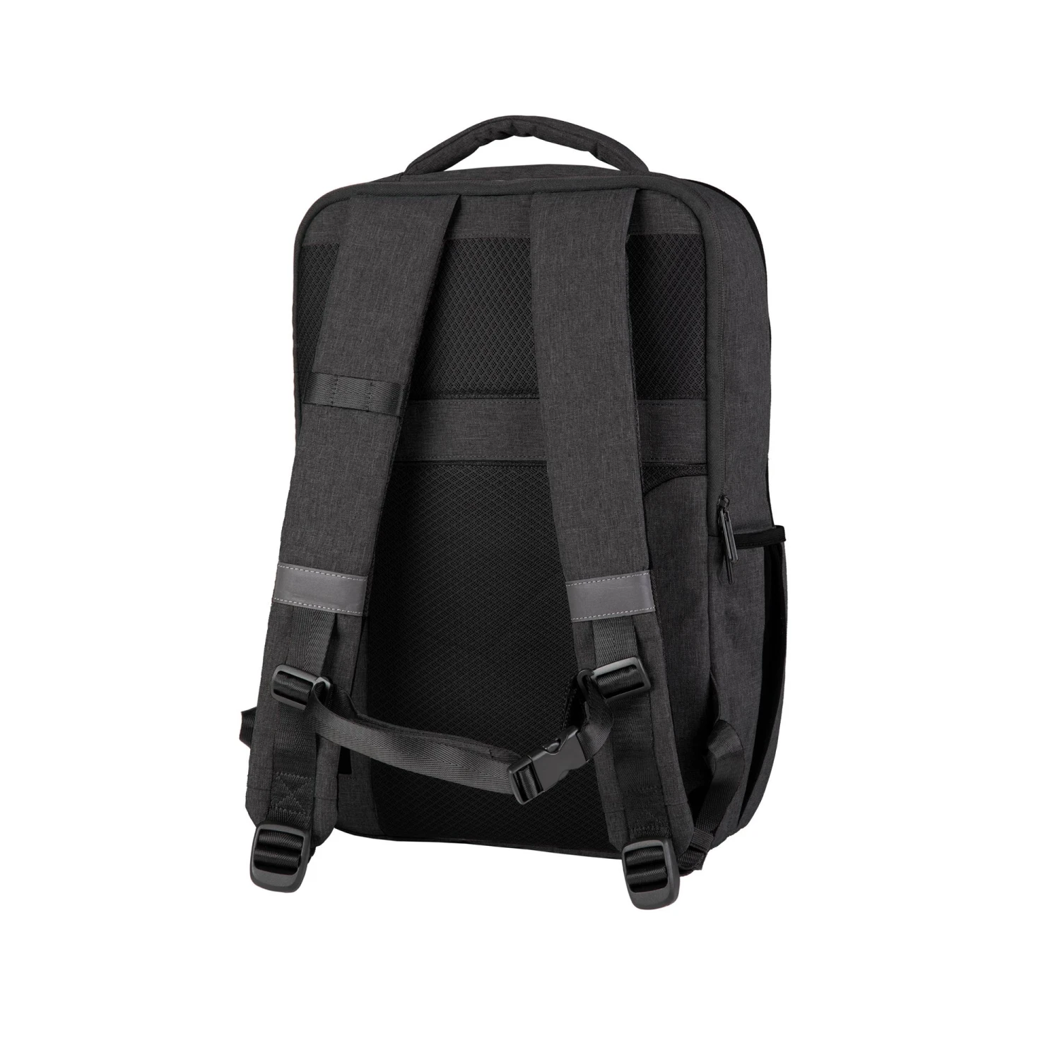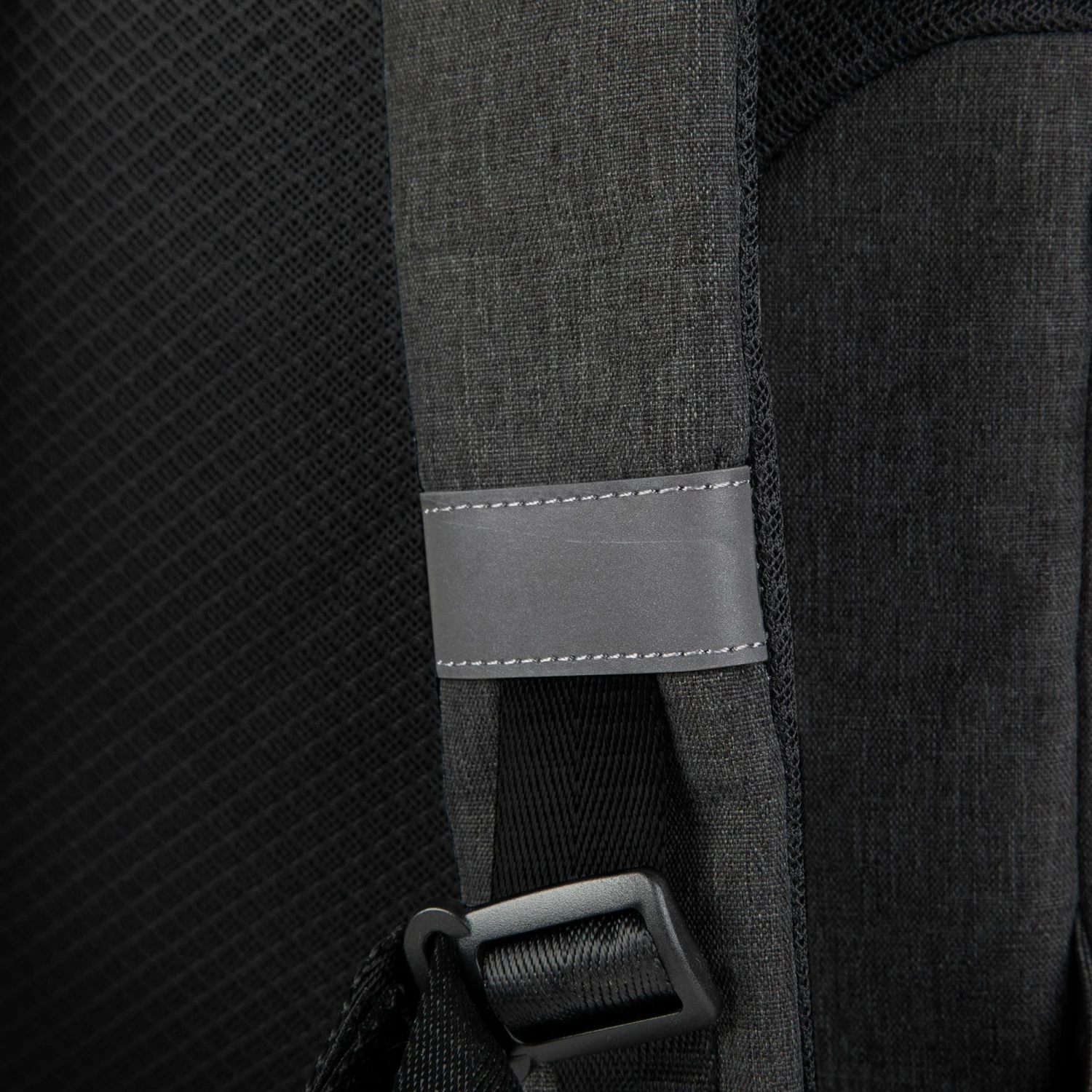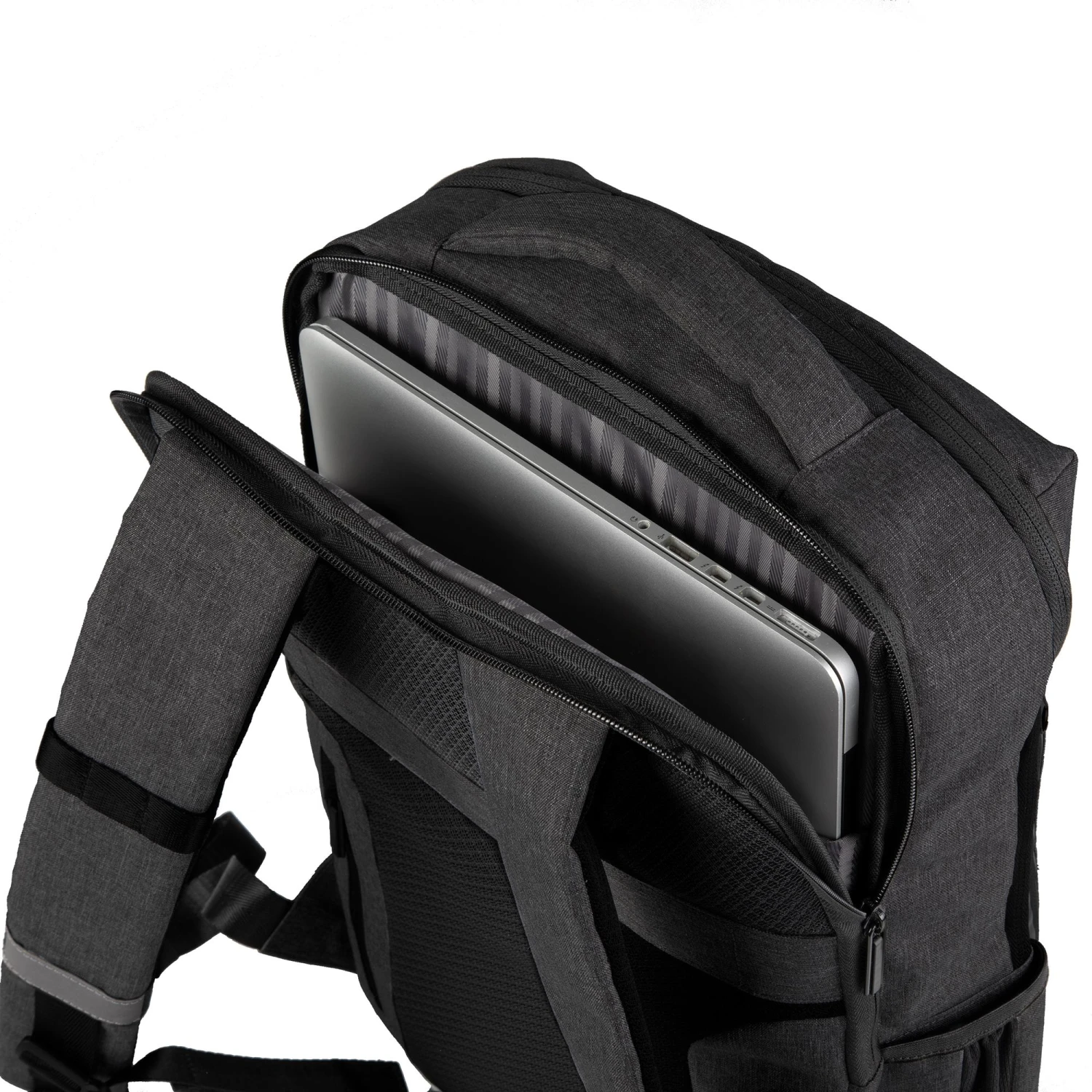 Sac à dos urbain imperméable avec poche ordinateur intégrée, inserts réfléchissants et porte antivol type U-lock.