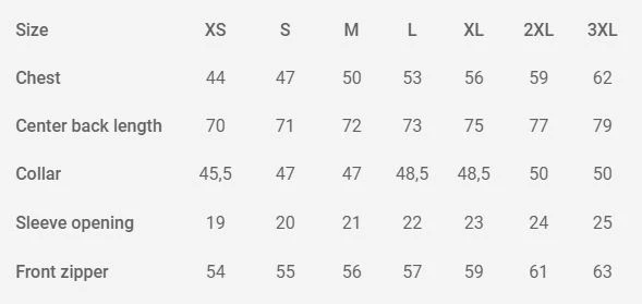 | Taille Jacket | S, M, L, XL, XXL, XXXL |